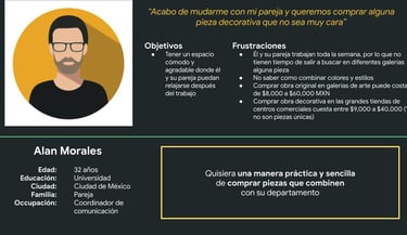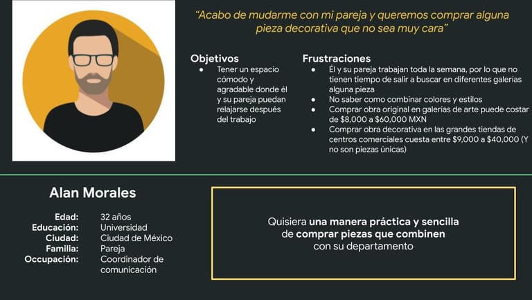 "As a professional who works five days a week, I want to buy an art piece for my living room without spending too much time, so I can dedicate my free days to other activities."